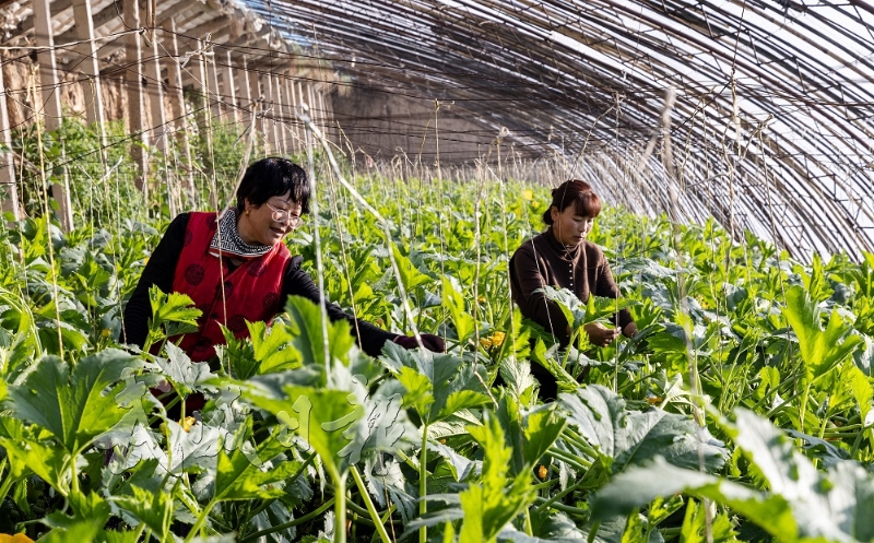 天祝县华藏寺镇岔口驿村三里墩组大棚内一派丰收忙碌的景象