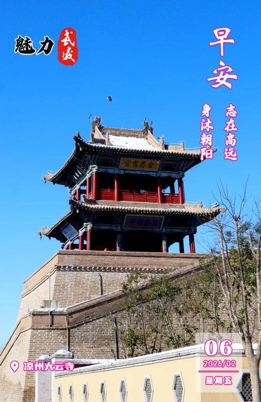 隆冬时节,武威雷台古朴幽静,冬韵悠长。铜奔马仪仗俑列阵肃立,天马踏燕凝千年雄姿,尽显汉韵威仪。景区内红灯高悬,满是迎春纳福的喜庆气息