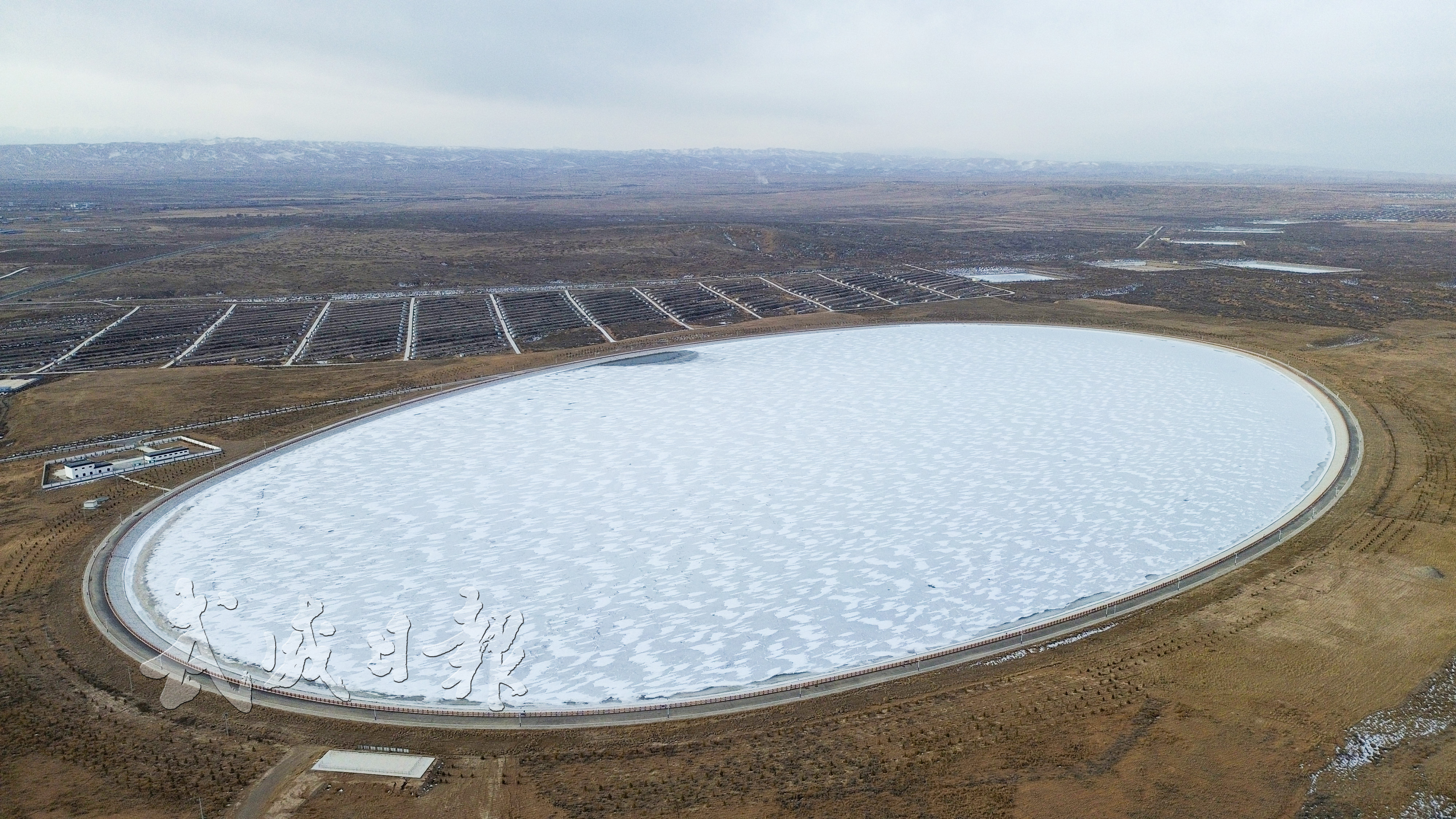 早春的古浪县黄花滩移民区水源保障工程6号调蓄水池