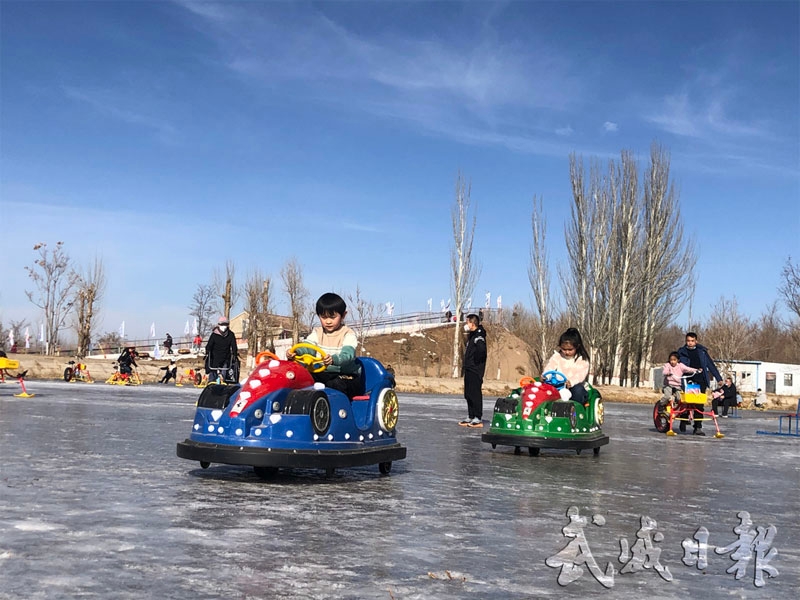 市民在武威沙漠公园“趣味冰雪节”游玩乐享冰雪项目