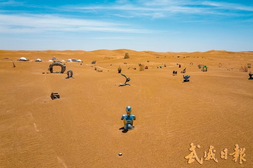 民勤沙漠雕塑国际创作营,立足雕塑与沙漠完美融合这一独特创意,将全新的生态理念、文化符号与艺术风格融为一体,见证了一个从无到有、点沙成金的奇迹,独具魅力的雕塑千姿百态,传播着人沙和谐共生的理念。