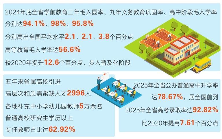 记者从11月24日下午省政府新闻办召开的“决胜收官‘十四五’ 争先进位话发展”主题系列新闻发布会上获悉,“十四五”时期,省教育厅坚持在谋长远、抓机遇、促改革、强保障、提质量上下功夫,推动我省教育事业发生了格局性变化,取得了历史性成就。