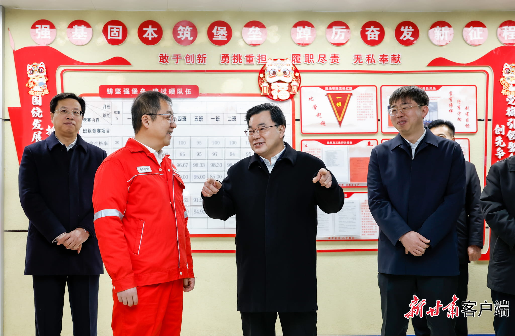 胡昌升先后来到玉门油田公司、甘肃巨化新材料有限公司、甘肃弘源央厨食品有限公司、酒钢集团宏博新材料公司、甘肃弘通中子科技有限公司、金川集团永昌铜业有限公司、甘肃贝达生物科技有限公司,深入企业生产一线和施工现场,详细了解企业科技创新、生产经营、安全生产等情况。他强调,要锚定高端化、智能化、融合化方向,坚持以科技创新引领产业创新,推进石化化工、有色冶金等传统产业延链补链强链,壮大新能源、新材料、生物医药、商业航天、低空经济等产业集群,不断提高产业体系现代化水平,形成上下游产业相互衔接、各展其长、同向发力的生动局面。要强化数智赋能,深入开展“人工智能+”行动,充分发挥数字经济赋能、赋智、赋值作用,推进数字化车间、智能工厂、未来工厂建设,加快培育发展新动能。要纵深推进“引大引强引头部”行动,大力引进高技术、高成长性、高附加值企业,带动产业链向价值链中高端跃升。要扎实开展营商环境创一流行动,坚持“有事上门、无事不扰”,积极主动为企业解决发展难题,着力营造尊商重商、亲商爱商、安商富商的浓厚氛围。