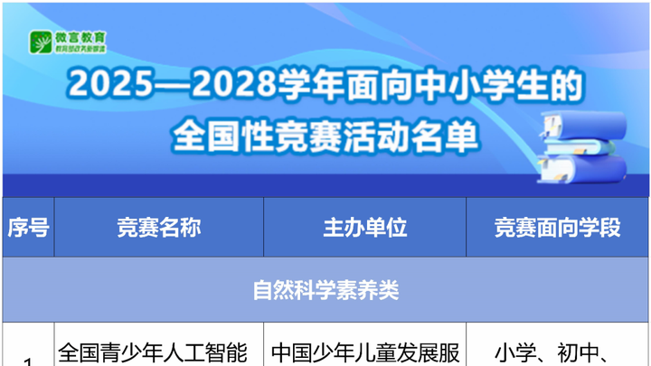 教育部近日印发通知,确定47项竞赛活动为2025—2028学年面向中小学生的全国性竞赛活动。一起看名单——《通知》明确——2025—2028学年面向中小学生
