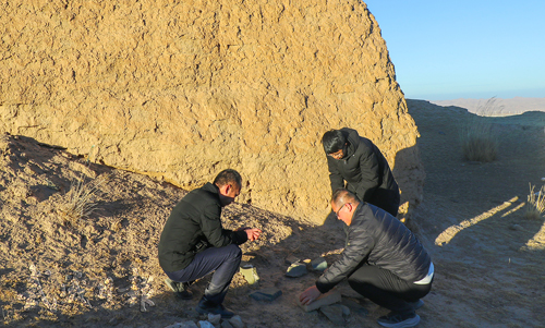 市长城文化保护研究中心工作人员在一座磨烽火台巡查