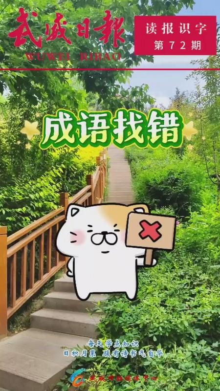 视频丨武威日报“读报识字”第72期与您见面啦,欢迎大家互动起来成语找错,一起感受中华文字的博大精深。