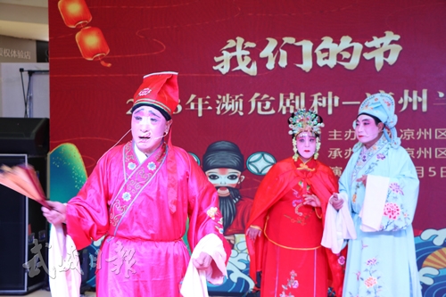据凉州区文化馆工作人员介绍,凉州半台戏又称“半台小戏”,是流传于凉州民间的一个传统戏曲品种。作为一种民间戏曲演出形式,半台戏在凉州北部,尤其是永昌镇、双城镇、下双镇等地较为盛行。凉州半台戏剧目繁杂、内容丰富,多以喜剧或闹剧为主,唱词极富特色,既有诗词化的娴雅婉转,又有口语化的通俗顺畅,还不失民间的生动鲜活。其唱腔曲牌约有百余首,成联缀体结构,民间称之为“联套”。2008年,凉州半台戏被列入第一批省级“非遗”名录。(记者梁文晶 徐凯生)