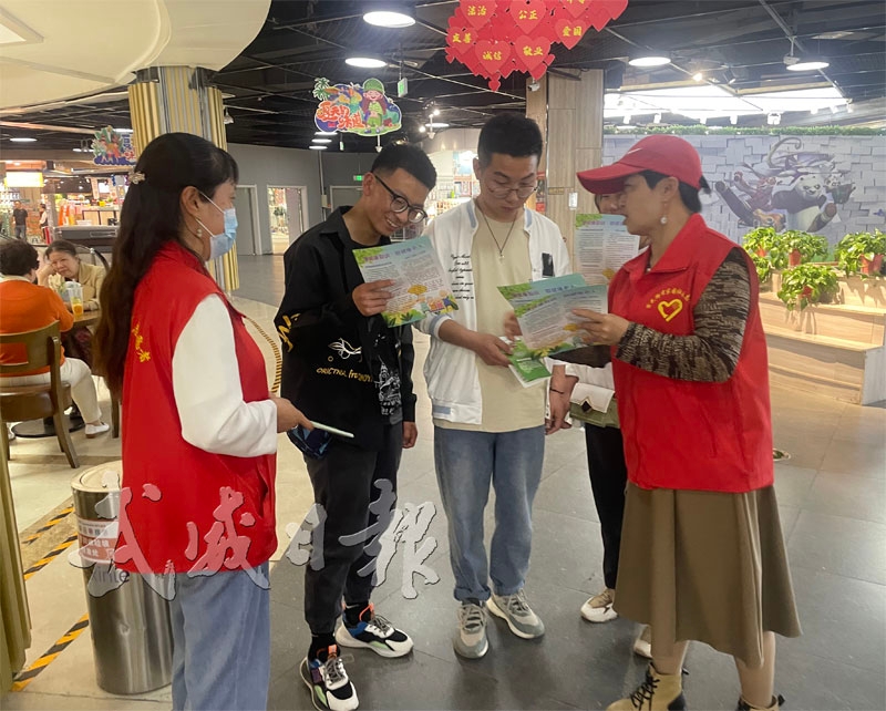 志愿者向市民发放宣传手册