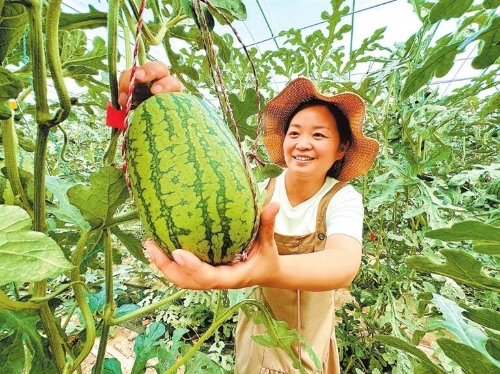 凉州区大柳镇村级集体经济产业园的西瓜喜获丰收。