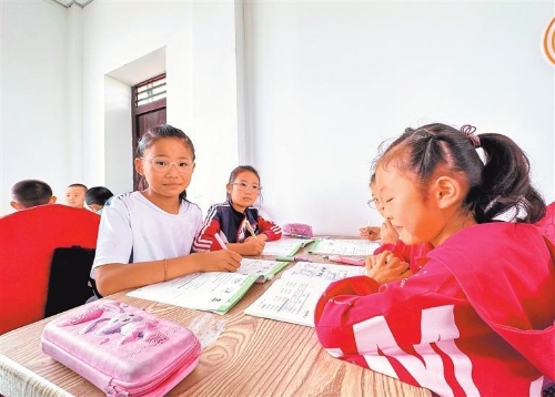孩子们在富民新村“一老一幼”关爱服务中心写暑假作业。