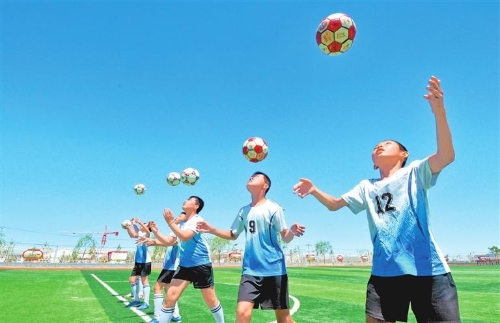 富民完全小学的孩子们在练习足球。本版摄影:新甘肃·甘肃日报记者 金奉乾