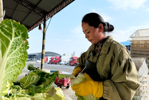 长隆蔬菜产业园工人在削剪娃娃菜。古浪县永丰滩镇立足当地特色农业产业资源优势,发展多品种露地蔬菜产业,以长隆农业科技有限公司为龙头,进一步扩大冷链物流规模,延长产业链条,实现企业发展、农户增收。(陈志鑫 熊皎)