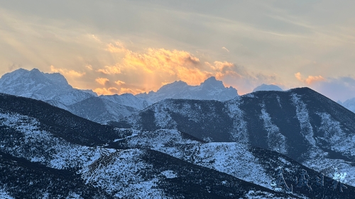 冬日,霞光掩映下的天祝县抓喜秀龙大草原和马牙雪山,处处彰显着草原的柔美和雪山的刚毅。 (