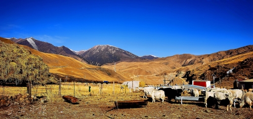 初春的天祝县毛藏乡,冰封的河面,雪白的峰峦,在蓝天的映衬下,宛如仙境般美丽。静谧的村落和袅袅炊烟,悠闲的牛羊和野生的马鹿,勾画出一幅幅生态和谐的秀美画卷。 (记者许德忠 通讯员韩正鸿)