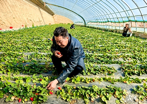 3月10日,市民在民勤县大坝镇草莓大棚体验采摘乐趣。民勤大坝镇不断调整农业产业结构,因地制宜引导和支持村民大力发展特色草莓产业,推动特色产业逐渐向规模化、集约化发展。(记者王翠 通讯员张晓娇)