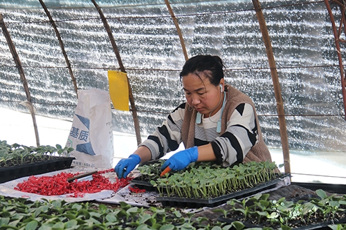 近日,武威市易辉农业科技有限公司育苗大棚内,工人正在嫁接育苗。目前,该公司年可供应高产优质蔬菜种苗2000万株以上,除满足当地农户种植需求外,还可为周边市县提供种苗。(记者王瑾)