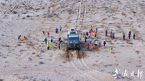 民勤县位于河西走廊东北部,被巴丹吉林沙漠和腾格里沙漠三面包围,作为国家“北方防沙带”的核心区域,守护着河西走廊乃至西北地区的生态安全,生态地位举足轻重。因此这里成为了志愿者治沙的重要战场,每年都有数千名来自全国各地的志愿者来到民勤压沙种树。