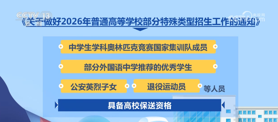 对于2026年普通高校部分特殊类型招生工作,《通知》要求,各地各有关高校建立有效监督机制,畅通社会监督渠道,及时公开公示有关信息,主动接受监督。未按要求公示的考生一律不得录取,牢牢守住公平公正底线。