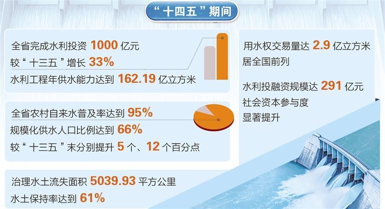 记者11月5日从省政府新闻办召开的“决胜收官‘十四五’ 争先进位话发展”水利主题新闻发布会上获悉,“十四五”以来,我省扎实推进水利高质量发展,累计完成水利投资1000亿元,较“十三五”增长33%,水安全保障能力显著提升。