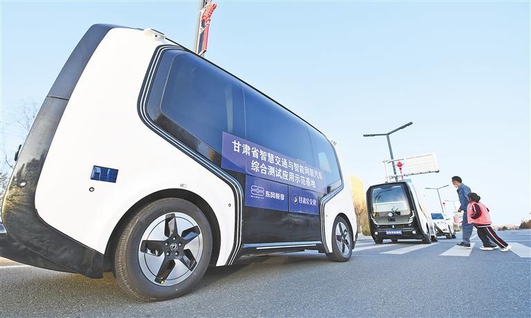 兰州新区自动驾驶动态体验车在“城市开放道路测试区”上路行驶。(记者丁凯)