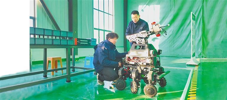甘肃大陆智源科技有限公司在瓜州县北大桥工业园区生产的首批执法辅助机器人顺利完工。(记者马万旭)