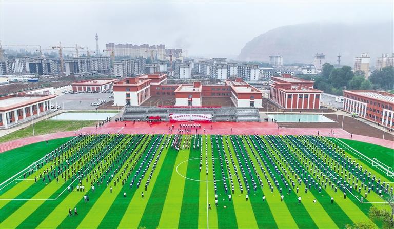 积石山县6.2级地震灾后恢复重建开学第一课启动仪式在临津中学举行。(记者田蹊)
