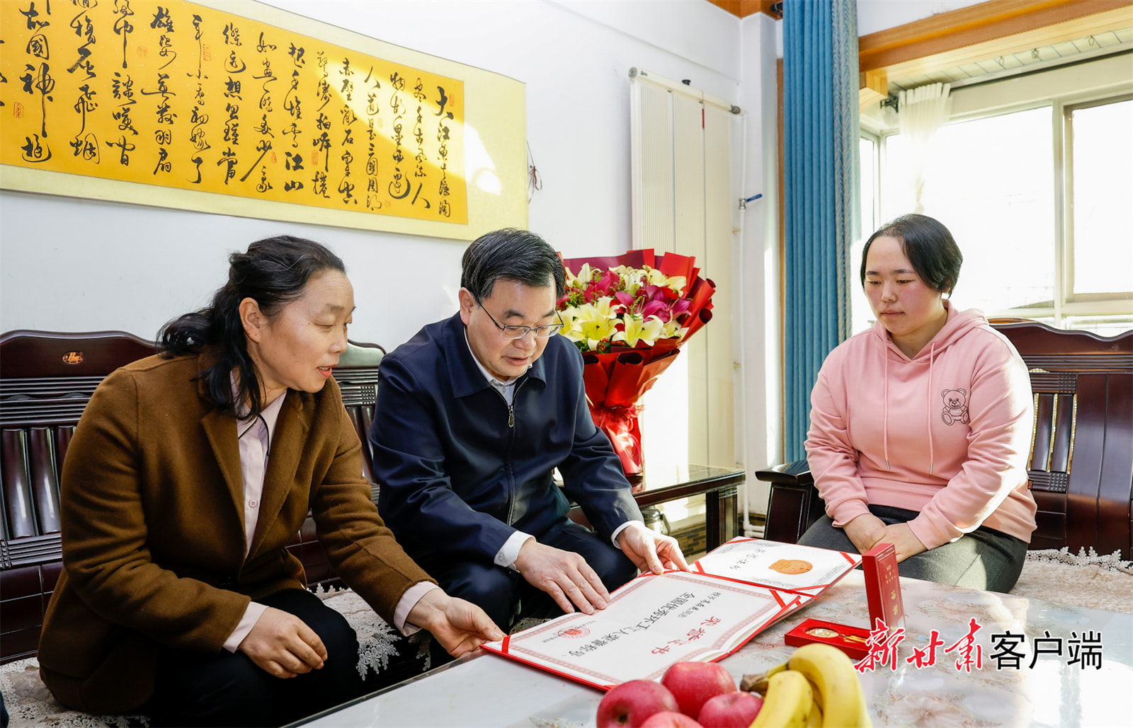 在走访慰问全国先进工作者、退休工人高存花和老党员朱建升时,胡昌升关切询问他们的身体状况、日常生活等情况,感谢他们作出的贡献,祝福他们健康长寿。他强调,各级各有关部门要悉心照顾老党员、老干部和先进工作者,满腔热情为他们办实事、做好事、解难事,让他们安享幸福晚年。要进一步营造崇尚先进、学习先进、争当先进的浓厚氛围,教育引导广大党员干部不忘初心、顽强拼搏,为奋力谱写中国式现代化甘肃篇章作出新贡献。