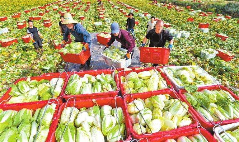 在山丹县霍城镇沙沟村,菜农们正采收高原娃娃菜。(通讯员王将)