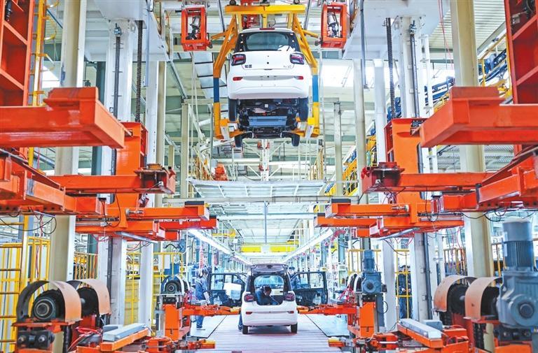 兰州新区知豆汽车工厂整车装配车间。(记者冯乐凯)