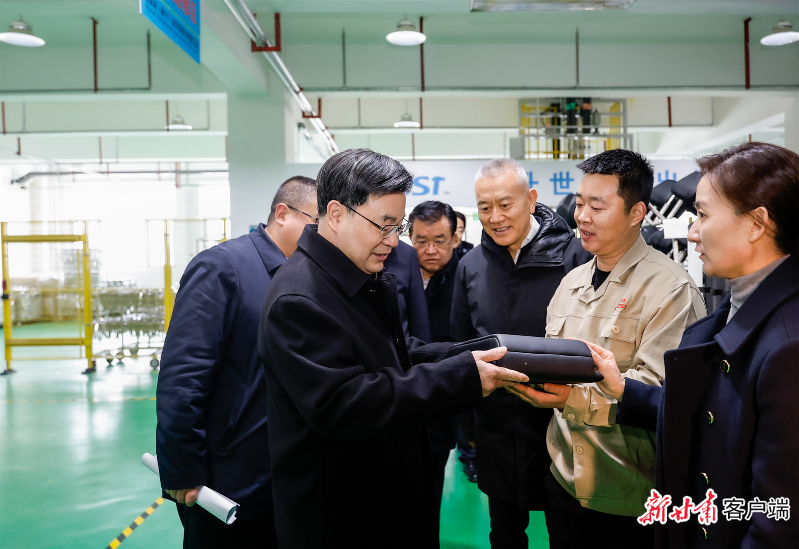 胡昌升先后来到静宁工业园区、平凉工业园区和庆阳“东数西算”产业园区,深入豪斯特(静宁)汽车零部件有限公司、沪佑正通电气系统有限公司、量维生物工程有限公司、数维时空科技有限公司,调研产业发展、科技创新、产品开发、营商环境建设等情况,对返乡创业的企业家帮助当地招商引资、吸纳群众就业、带动产业发展的做法表示赞赏。他强调,要大力发展工业,深入实施强工业行动,促进传统工业转型升级,不断延伸新兴产业链条,发展壮大食品加工、纸质包装、塑料制品等现代轻工业,走出一条适合当地实际的工业发展路子。要坚持以科技创新引领产业创新,深入实施研产融合科技攻关赋能计划,围绕产业发展短板加大技术攻关力度。要着力强化数智赋能,加力推进数字经济发展,纵深实施“人工智能+”行动,促进产业数字化、数字产业化,提升实体经济智能化、数字化、融合化水平。要围绕做强一体化算力网络国家枢纽节点,加快实施算力扩容聚链发展工程,强化算力、算法、数据等高效供给,坚持算网存用一体发展,打造绿电、绿算、绿产协同发展高地。