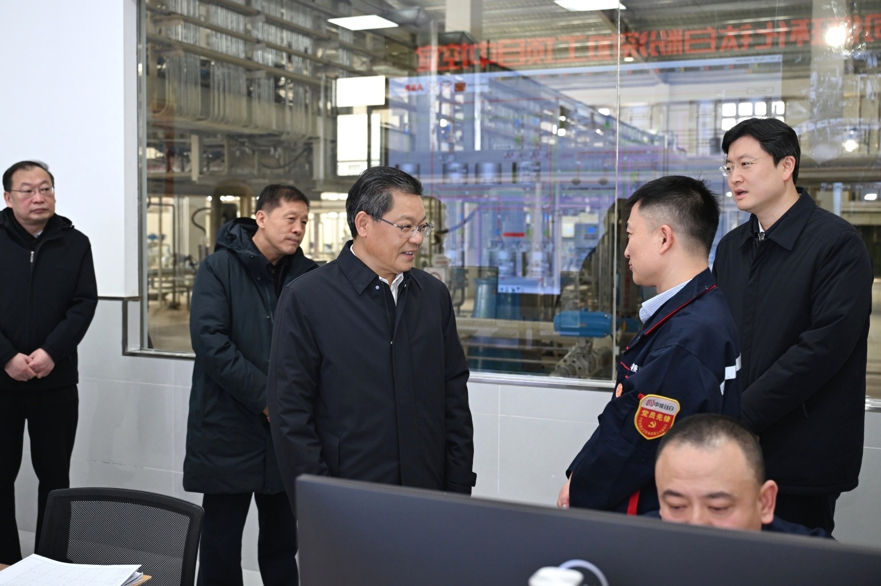 2月14日,省委副书记、省长任振鹤在白银市、兰州市调研重点企业春节期间生产运行情况,向坚守在生产一线的职工致以节日的美好祝福。(记者盛学卿)