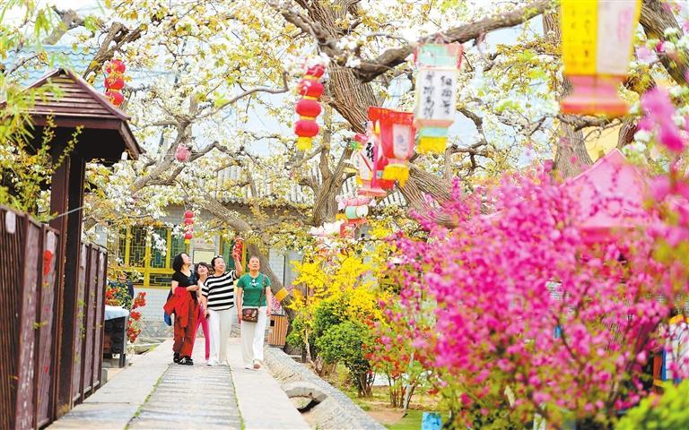游客在什川古梨园赏花游览。《兰州市什川古梨树保护条例》的施行,让什川古梨树保护、产业发展有法可依。(记者裴强)