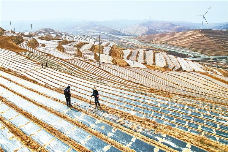 通渭县马营镇农户覆膜播种蚕豆。《甘肃省废旧农膜回收利用条例》施行后,我省田间地膜实现资源化利用,农业面源污染得到有效治理。(通讯员张赛)